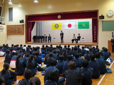 本日、榛松中学校お別れ会が実施されました。保護者の皆様のご協力もあり、多くの生徒が集まり、ささやかながらも温かい雰囲気の会になりました。