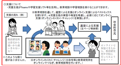 川口市立教育研究所では令和4年4月からGIGAスクール端末を用いた支援(オンラインわく・チャレ)を順次開始しています。